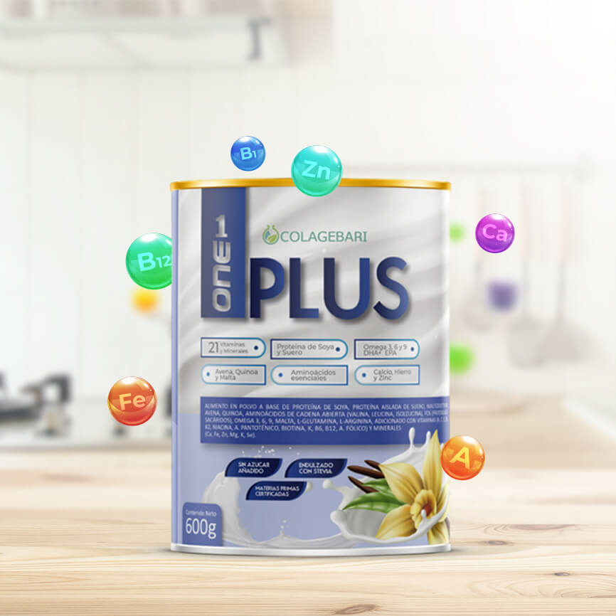 ONE PLUS es una fórmula completa y balanceada de proteínas, vitaminas y minerales esenciales. Estos nutrientes fundamentales son clave para un funcionamiento óptimo de tu organismo.